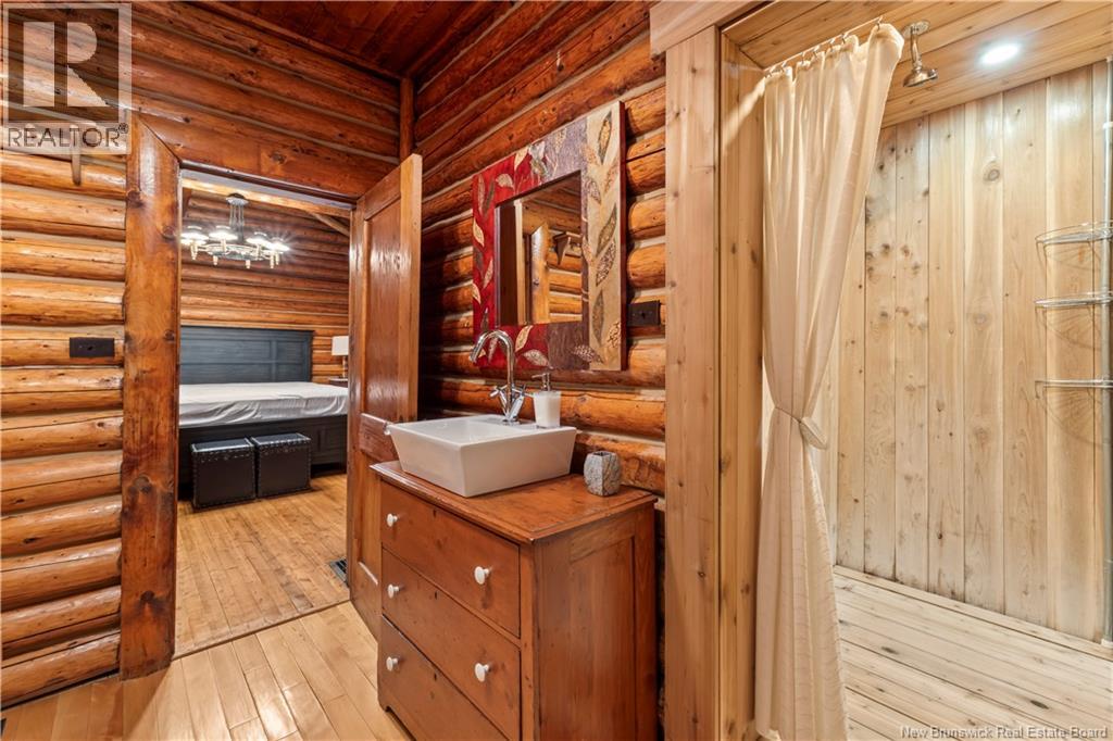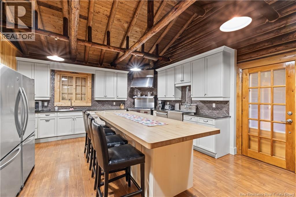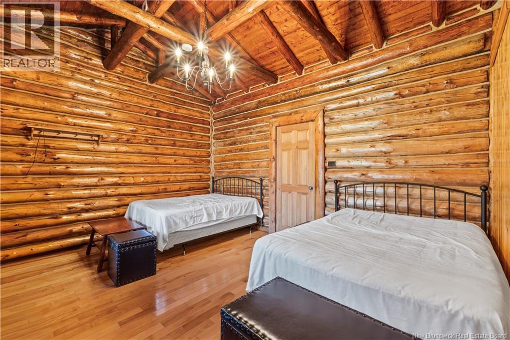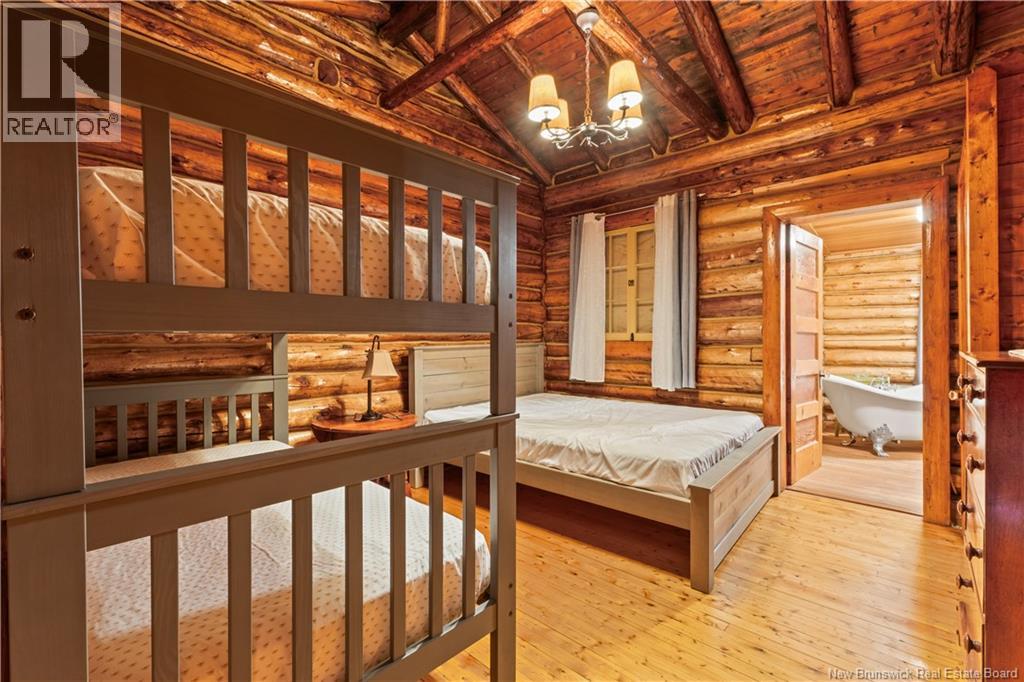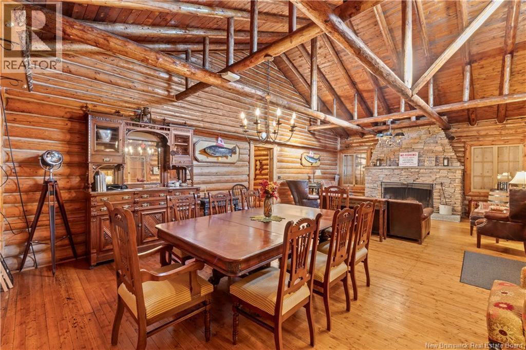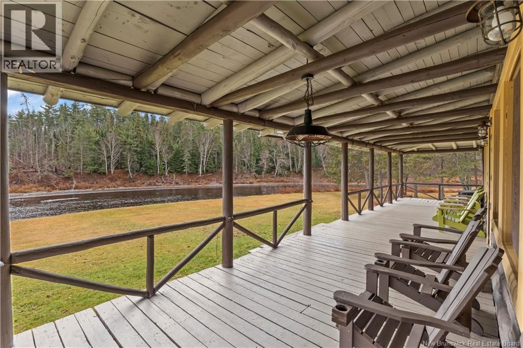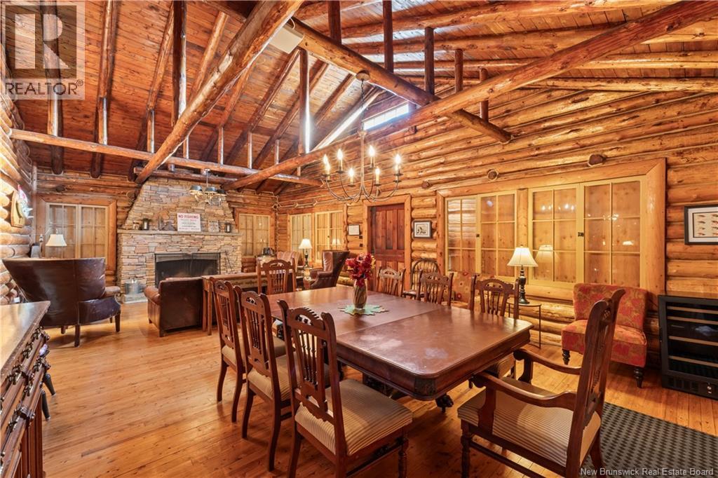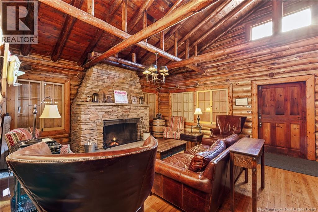 Exceptional opportunity to own a unique Canadian wilderness resort nestled in the natural beauty of New Brunswick. This property features a traditional horizontal log lodge originally built for Seabury Stanton of New Bedford, MA (former CEO of Berkshire Hathaway), and has recently undergone an extensive four-year restoration and development project. The main lodge offers four private bedroom suites, each with its own full bathroom, including a primary suite with a private deck. The lodge also features a spacious kitchen, large living area, laundry room, and ample storage space. Additional accommodations include a 2-bedroom chalet with 1 bathroom and full kitchen, providing comfortable guest or staff lodging. A separate headquarters building includes two additional bedrooms, one bathroom, an office, operations center, laundry facility, garage, and workshop. There is also a guides post with its own 3-piece bathroom, and a butlers quarters/garage with a combined living and kitchen area, two bedrooms, and a full bathroom. Miles of private trails and road systems offer exceptional recreation opportunities, including hiking, mountain biking, bird watching, and wildlife observation. For anglers, the property includes over 5 km of river frontage and 18 private pools along the renowned Cains River. The resort is equipped with solar power and propane generator systems, ensuring reliable off-grid capability and year-round energy security. (id:42007)