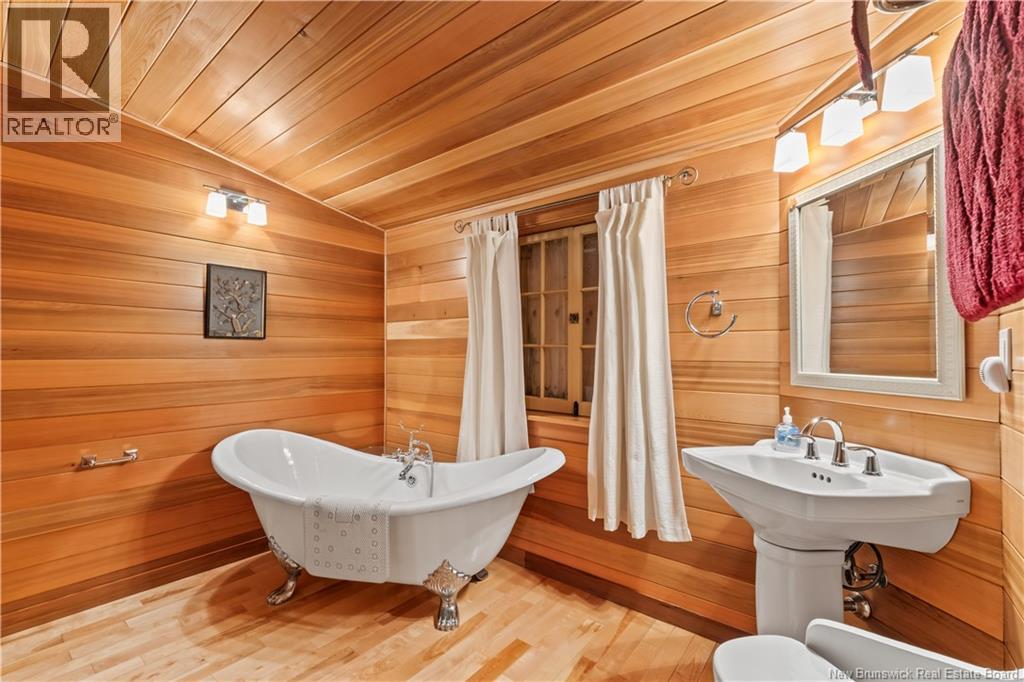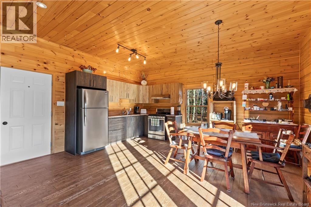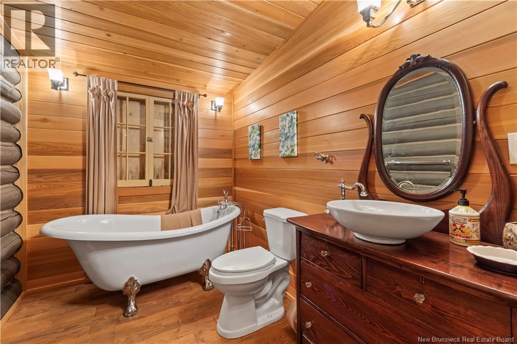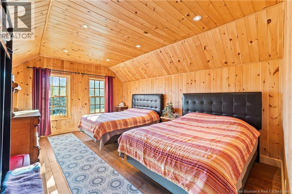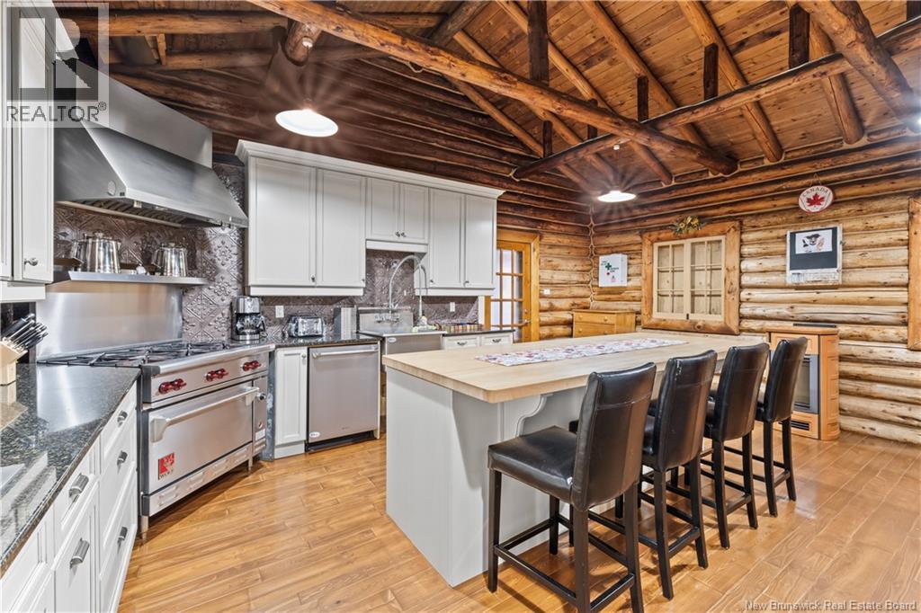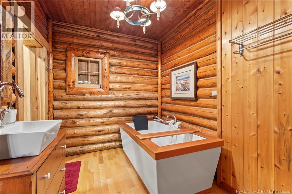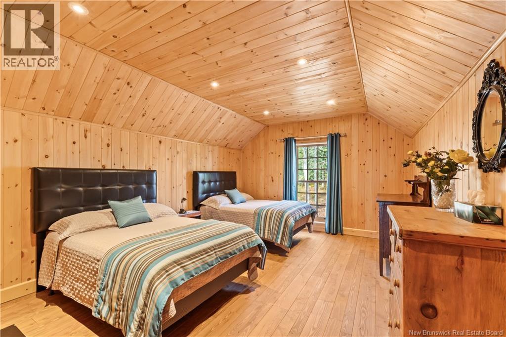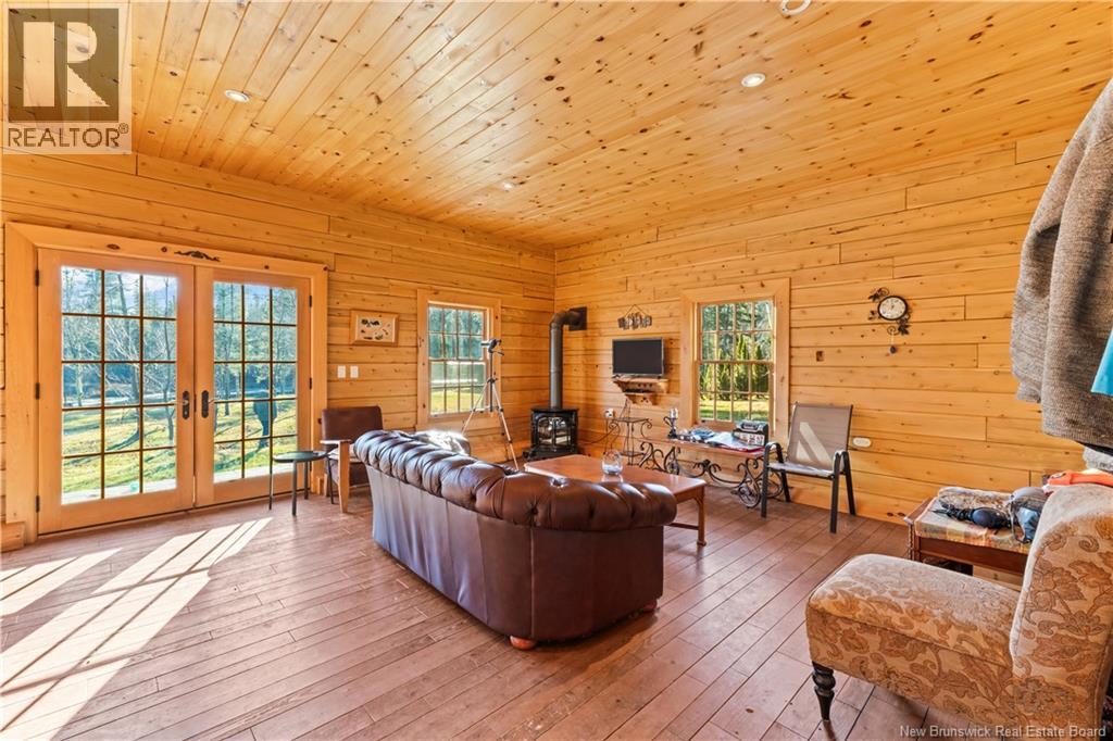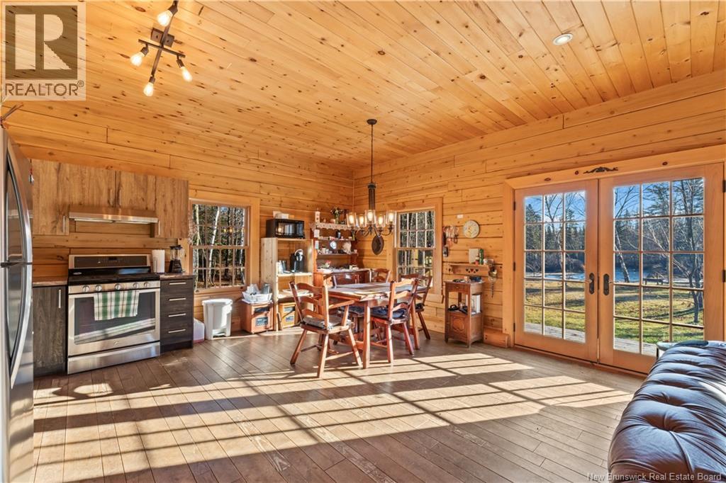 Exceptional opportunity to own a unique Canadian wilderness resort nestled in the natural beauty of New Brunswick. This property features a traditional horizontal log lodge originally built for Seabury Stanton of New Bedford, MA (former CEO of Berkshire Hathaway), and has recently undergone an extensive four-year restoration and development project. The main lodge offers four private bedroom suites, each with its own full bathroom, including a primary suite with a private deck. The lodge also features a spacious kitchen, large living area, laundry room, and ample storage space. Additional accommodations include a 2-bedroom chalet with 1 bathroom and full kitchen, providing comfortable guest or staff lodging. A separate headquarters building includes two additional bedrooms, one bathroom, an office, operations center, laundry facility, garage, and workshop. There is also a guides post with its own 3-piece bathroom, and a butlers quarters/garage with a combined living and kitchen area, two bedrooms, and a full bathroom. Miles of private trails and road systems offer exceptional recreation opportunities, including hiking, mountain biking, bird watching, and wildlife observation. For anglers, the property includes over 5 km of river frontage and 18 private pools along the renowned Cains River. The resort is equipped with solar power and propane generator systems, ensuring reliable off-grid capability and year-round energy security. (id:42007)