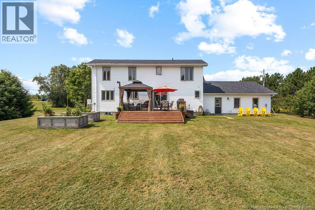 Set on over 3 acres of land,this stunning 4-bedroom home you will immediately fall in love with the airy, open-concept design and soaring ceilings that create a warm, inviting atmosphere filled with natural light.The main level features a bright and spacious living area, a well-appointed kitchen, a dedicated computer room, a stylish 3-piece bathroom, and a large primary bedroom for added comfort. Conveniently, this level also includes direct access to the attached 24' x 24' garage.Upstairs, you'll find three more generously sized bedrooms, a 4-piece bathroom, and a conveniently located laundry area for easy living.The newly finished basement is the ultimate family retreat,tastefully designed for relaxation. Whether you're watching movies, enjoying quality time together, or cozying up by the brand-new wood stove in the winter, this space offers both comfort and charm. The basement also includes a half bath and a dedicated storage room. This private, property is perfect for outdoor living! Unwind or entertain in the beautiful backyard, featuring a brand-new deck and a charming gazebo,great for morning coffee, summer evenings, or enjoying meals outside. With plenty of room to garden, play, or create your dream outdoor space, all just 20 minutes from Miramichi and minutes from Rogersville. Whether you're dreaming of a garden, extra outbuildings, or simply enjoying peace and quiet, this lot also deliversroom to accommodate an RV, Trailer or Boat! New roof shingles in 2020! (id:42007)