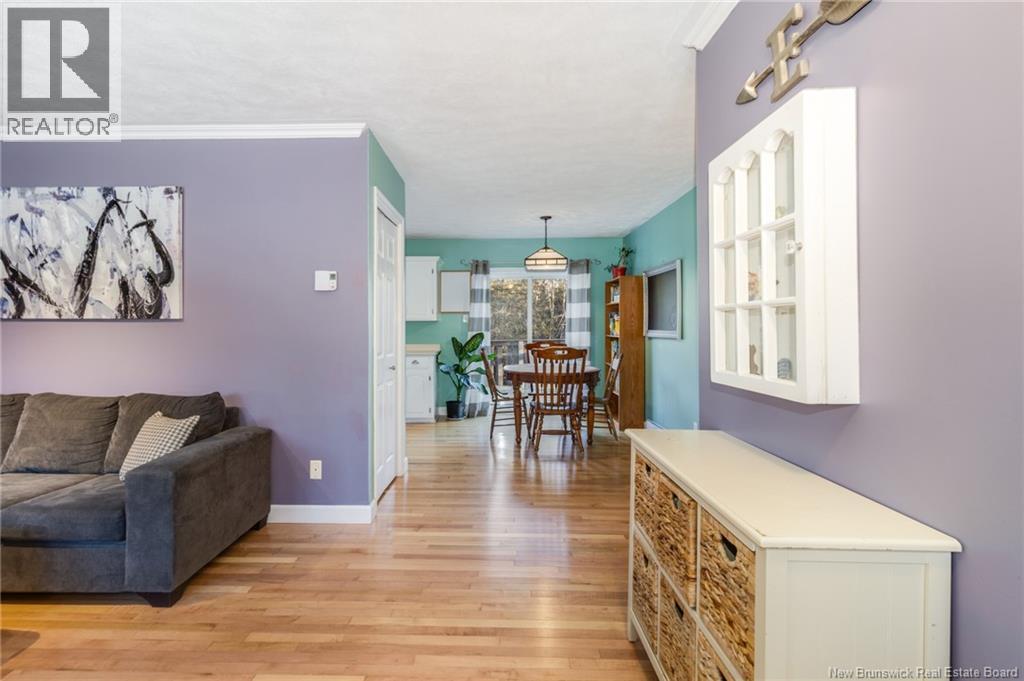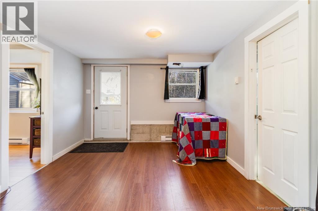 This move-in-ready bungalow sits on a private, treed lot in a quiet community; perfect for first-time buyers or anyone seeking a peaceful setting close to town. Inside, the main level offers a bright, good-sized living room, a dining area with patio doors leading to your private deck, and a functional kitchen with white cabinetry and a handy pantry. Three comfortable bedrooms and a full bath complete this level, with hardwood flooring throughout and laminate in the bath. The lower level extends your living space with a fourth bedroom, currently used as an office, a generous family room, a large laundry/storage room with abundant shelving, and a separate utility/storage area. The walkout mudroom adds everyday convenience and opens the door to future possibilities, including income potential or a multigenerational setup. Plumbing is already in place for a second bathroom in the laundry area. The front veranda provides the perfect spot to enjoy the quiet, country-style surroundings while still being close to the city. Vendor is related to the listing REALTOR® (id:42007)