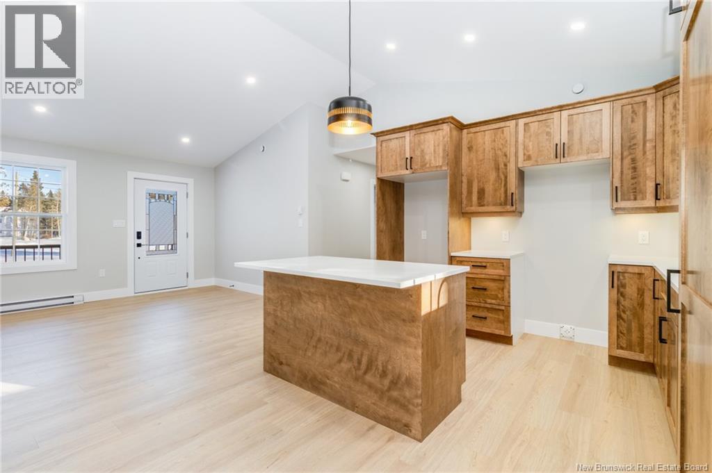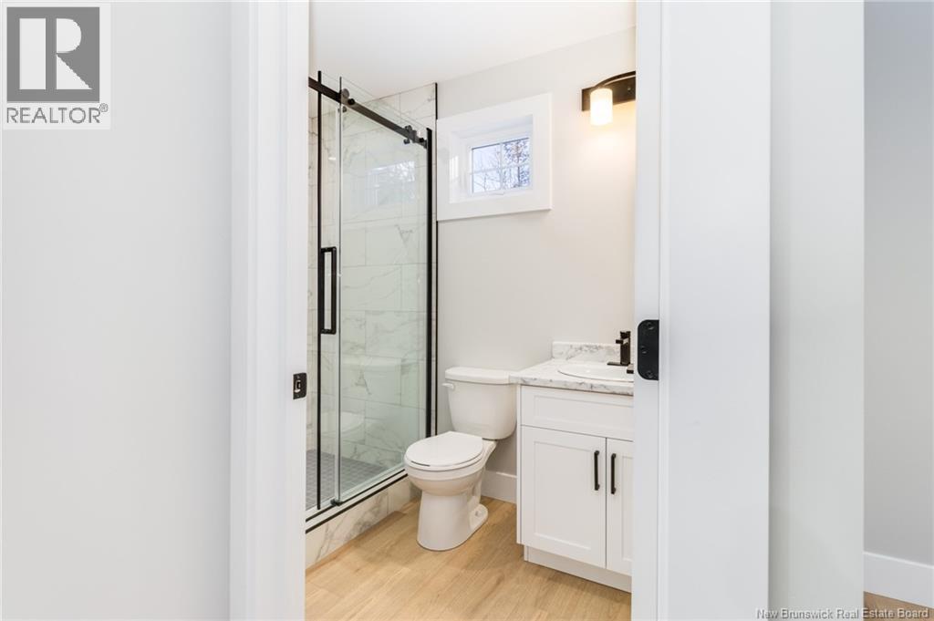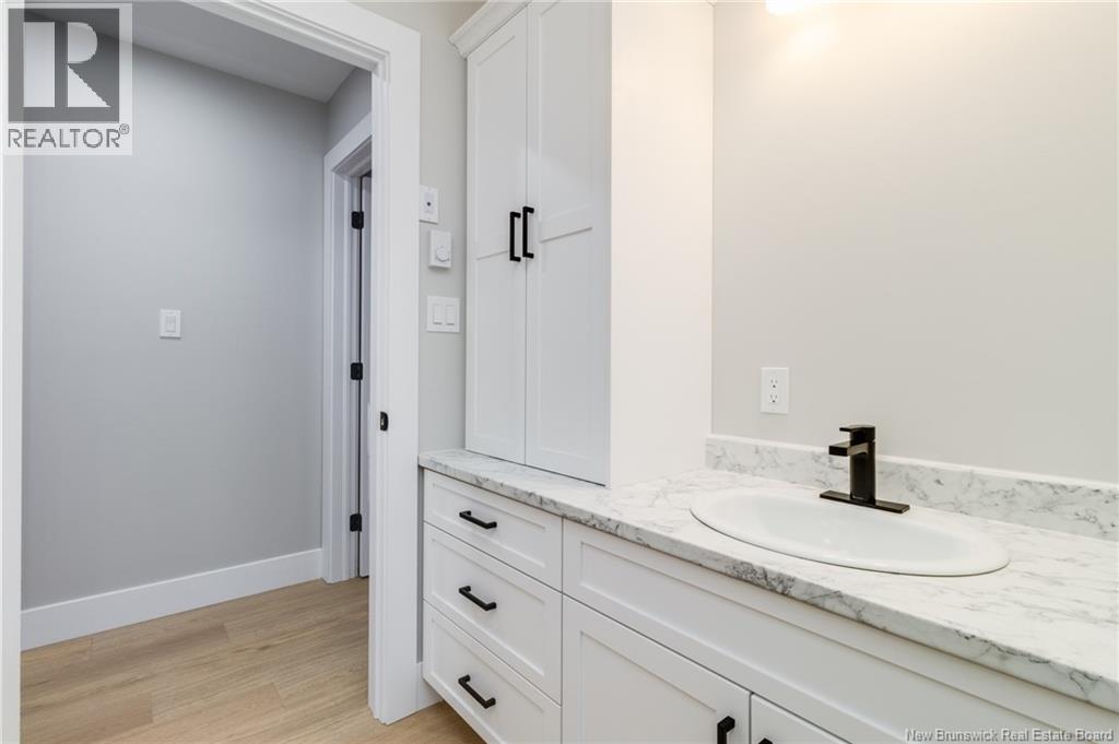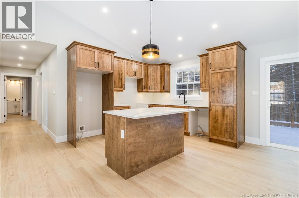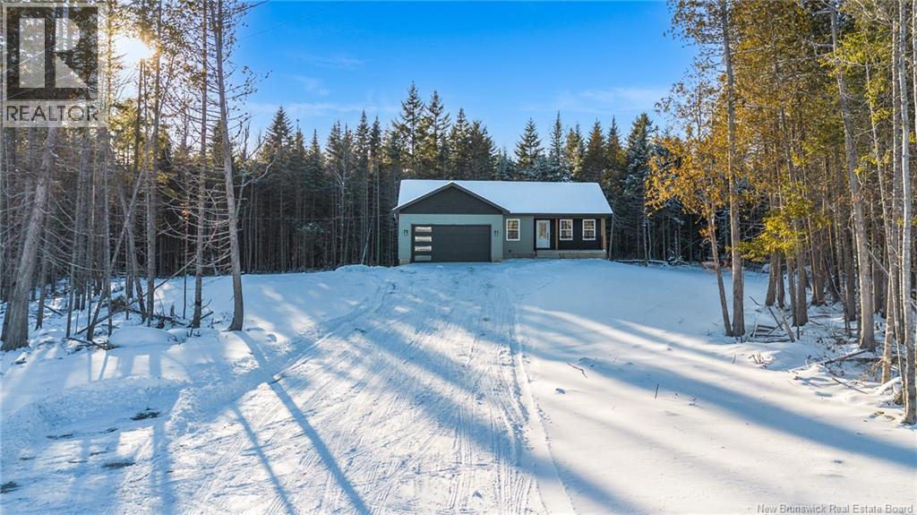 Looking for a new home with privacy while staying close to all Fredericton North amenities? This beautifully designed 3-bed, 2-bath home offers the perfect balance. The main level features an open-concept kitchen, dining and living area with cathedral ceilings and direct access to a charming covered veranda. The kitchen impresses with natural wood shaker cabinets, rollout shelving, under-cabinet lighting, a Blanco undermount sink, quartz countertops, and a spacious island, with patio doors leading to a pressure-treated deck overlooking a private backyard. Down the hall, the primary suite sits alone down at the end of the home and includes a large walk-in closet and a stunning ensuite with custom tile shower and glass enclosure. Two additional bedrooms and a full main bath with oversized vanity and tub/shower complete the main level. A generous laundry room provides access to the full basement and the insulated double garage. A wonderful family home in a peaceful setting, close to everything and a good price for a new home. (id:42007)