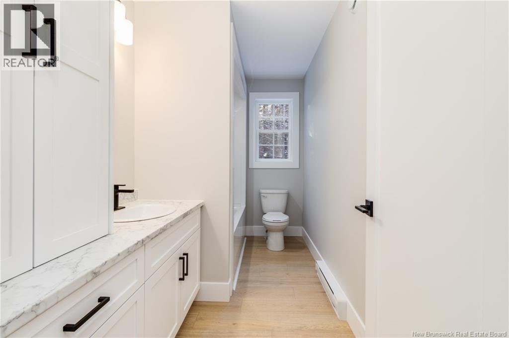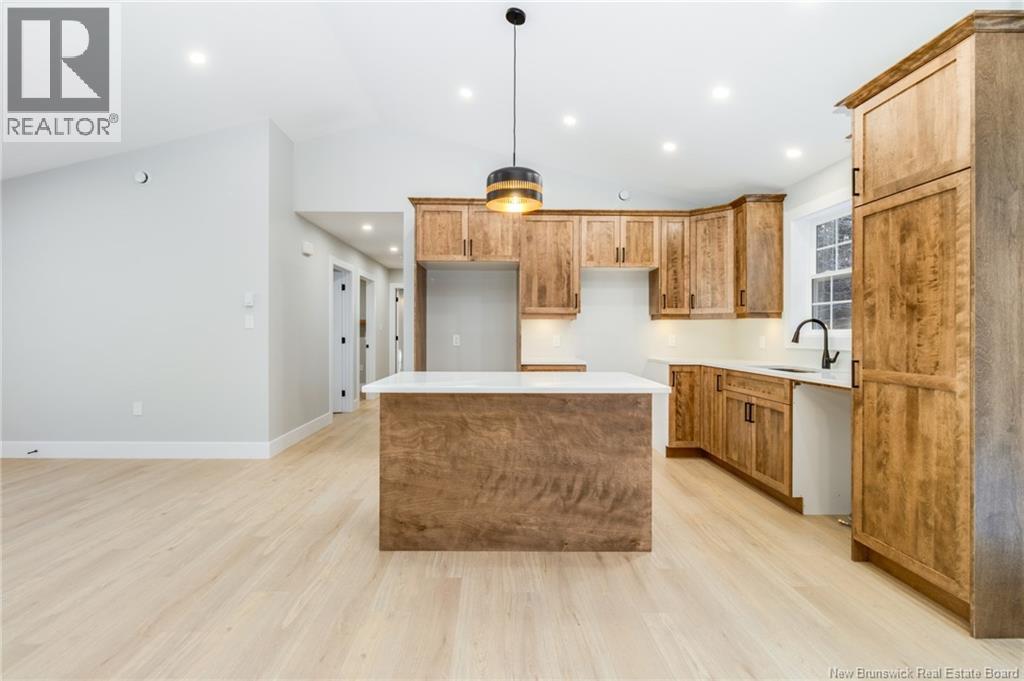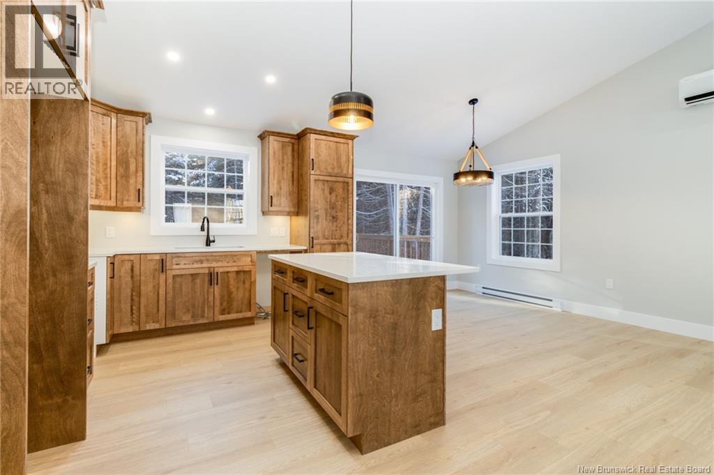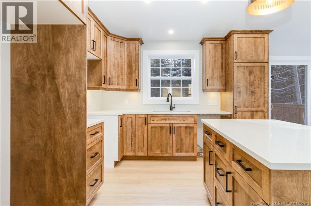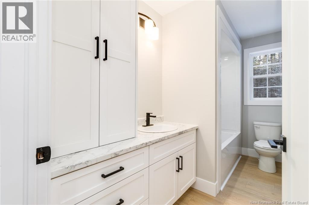 Looking for a new home with privacy while staying close to all Fredericton North amenities? This beautifully designed 3-bed, 2-bath home offers the perfect balance. The main level features an open-concept kitchen, dining and living area with cathedral ceilings and direct access to a charming covered veranda. The kitchen impresses with natural wood shaker cabinets, rollout shelving, under-cabinet lighting, a Blanco undermount sink, quartz countertops, and a spacious island, with patio doors leading to a pressure-treated deck overlooking a private backyard. Down the hall, the primary suite sits alone down at the end of the home and includes a large walk-in closet and a stunning ensuite with custom tile shower and glass enclosure. Two additional bedrooms and a full main bath with oversized vanity and tub/shower complete the main level. A generous laundry room provides access to the full basement and the insulated double garage. A wonderful family home in a peaceful setting, close to everything and a good price for a new home. (id:42007)