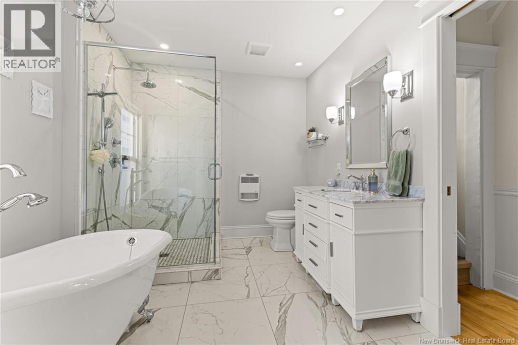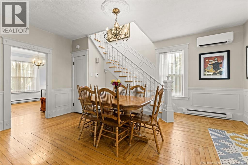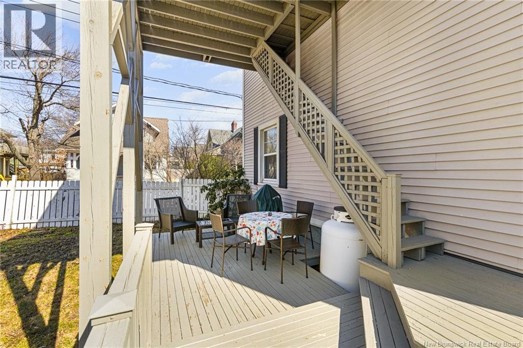 *** CHARMING DOWNTOWN 2.5 STOREY // CORNER LOT // 4 NEW MINI-SPLITS/ TOP LEVEL BALCONY // FENCED BACKYARD // REFINISHED LOFT // COMPOSITE FRONT DECK *** Welcome to 158 Bonaccord, located in the heart of downtown Moncton close to all amenities. Character embraces you in the foyer/dining area with BEAUTIFUL WAINSCOTTING and DECORATIVE ACCENTS and through FRENCH DOORS to the living room highlighted by plenty of windows, and PROPANE FIREPLACE. Also on this level are a NEW mini-split, 2pc powder room, formal dining room currently used as an office with NICE MOULDINGS, and an eat-in kitchen with DARK STAINED CABINETRY and door to the LARGE PATIO overlooking the FENCED BACKYARD with baby barn and nice flowers and shrubs. Ascend the WINDING STAIRCASE TOUCHED BY WAINSCOTTING to the second floor where youll find another new MINI-SPLIT, an OPEN, COZY SITTING NOOK, big LINEN CLOSET with lots of storage, spare bedroom with 2 closets and primary bedroom with WALK-IN CLOSET leading to the STYLISH 4pc bathroom with CUSTOM TILED SHOWER and CLAWFOOT TUB. Keep on going to discover two RARE GEMS for older Moncton homes - a TOP LEVEL PATIO WITH LOVELY VIEW, AND REFINISHED AND FRESHLY PAINTED LOFT WITH NEW FLOORING, NEW MINI-SPLIT, POT LIGHTS, SKYLIGHT, LIVING ROOM/OFFICE/PLAY ROOM, and 3RD BEDROOM WITH LARGE WALK-IN CLOSET, SKYLIGHT and VIEW OF THE CATHEDRAL. The basement is fully drywalled and has MINI-SPLIT, LAUNDRY WITH WASH SINK, INTERIOR DRAIN TILE, NEWER PLUMBING AND HUMIDEX. A must see! (id:42007)