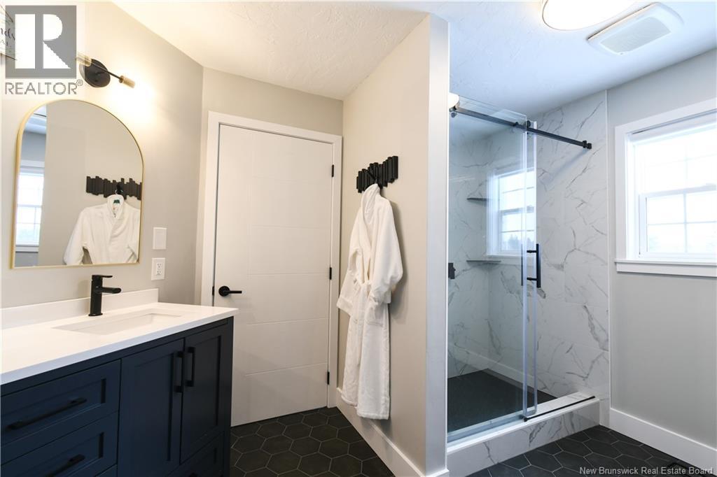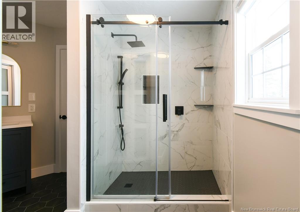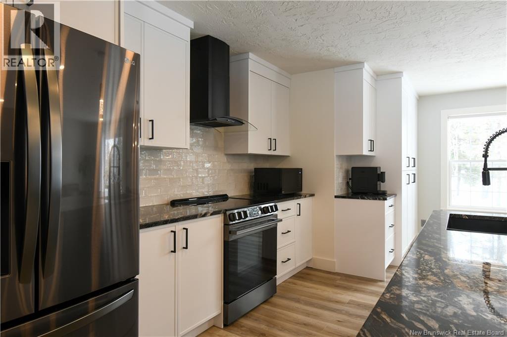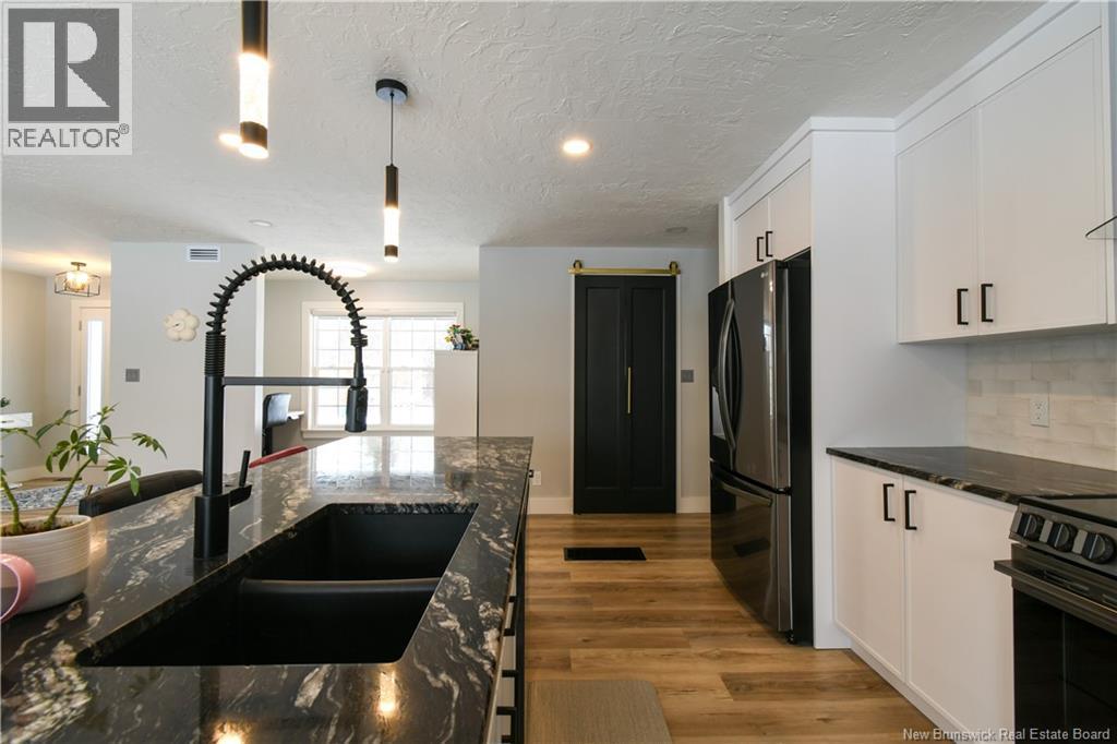 Welcome to 166 Route 535 in Notre-Dame a fully renovated bungalow set on over 5.5 acres of private riverfront land, just 20 minutes from Moncton. Enjoy peaceful country living with quick access to city amenities, hospitals, shopping, and major retailers. The main level offers a spacious entrance, bright living and dining areas, and a fully remodelled kitchen (2024) featuring black granite countertops, new black stainless steel appliances and ample cabinetry. A convenient half bath with laundry and storage completes this level. Youll also find three well-sized bedrooms, including an extra-spacious primary with direct access to the updated full bathroom with walk-in tile shower, hexagon ceramic flooring, and Schluter membrane system. The lower level features a large family room with pool table, a non-conforming bedroom, utility/storage space, and a new 4-piece bathroom with heated floors, standalone soaking tub, and bidet. Additional upgrades include new basement windows, patio door, interior doors, and updated lighting. Outside, enjoy exceptional privacy, riverfront access ideal for fishing and kayaking, and an oversized attached garage perfect for vehicles, a workshop, or recreational toys. Move-in ready and beautifully updated, this property offers space, comfort, and nature all in one. (id:42007)