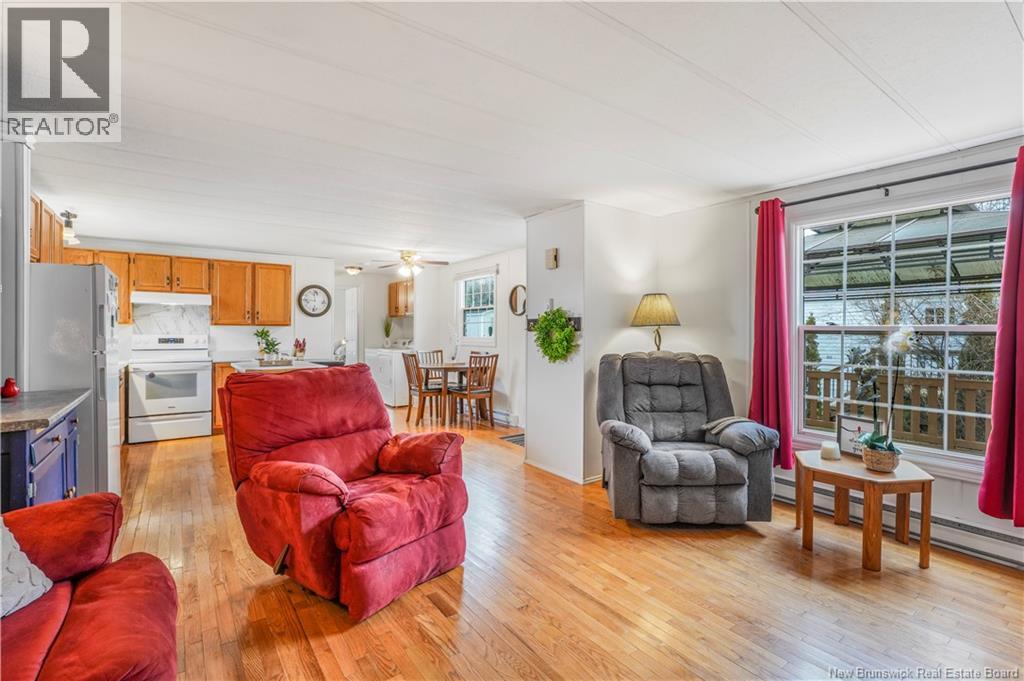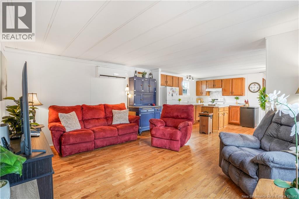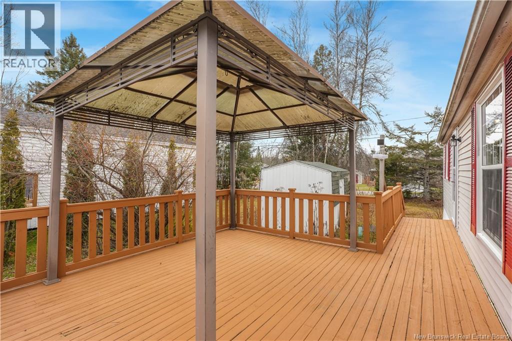 Welcome to Tamarack Estates! Very well maintained 3 bedroom, 1 bathroom mini-home, perfectly situated on a quiet and very private street. Step into the large eat in kitchen with moveable island and lots of cabinet space. Warm and inviting, the interior features rich hardwood floors throughout the main living areas, offering both durability and timeless style. Stay comfortable year-round with the efficiency of a heat pump, providing both heating and cooling. The bright, open layout makes great use of space with the primary bed and full bath at one end of the home and the other 2 bedrooms at the opposite end. Step outside and enjoy the impressive outdoor space. A large, multi-purpose deck extends your living area outdoors, perfect for barbecues, gatherings, or relaxing with your morning coffee. The property also includes a charming gazeboideal for enjoying warm evenings or creating a tucked-away outdoor retreat. The large storage shed is also included and only steps from the deck. With privacy, comfort, and great features inside and out, this mini-home is an excellent option for first-time buyers, downsizers, or anyone seeking peaceful living in a well-loved home. (id:42007)