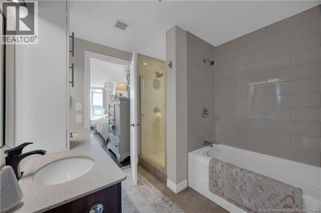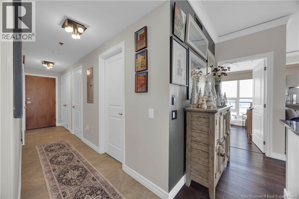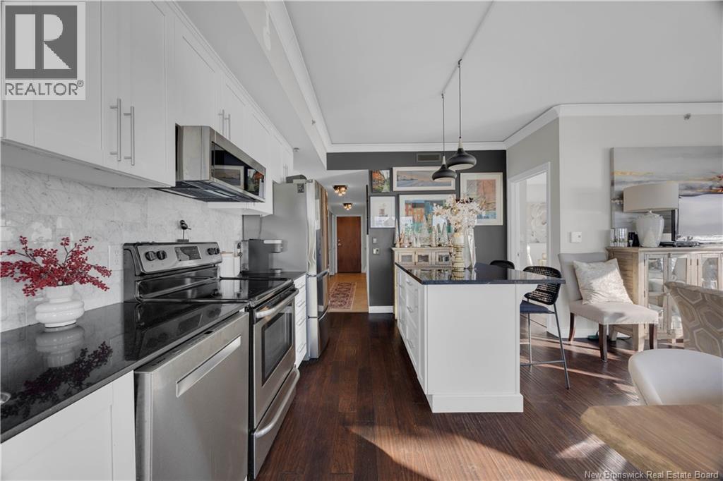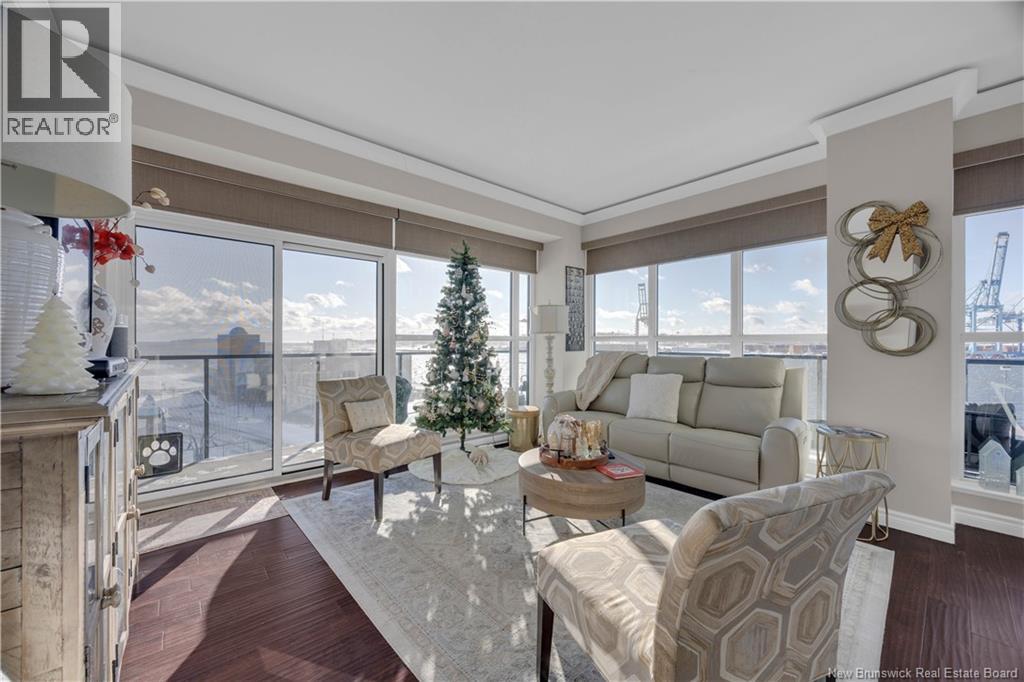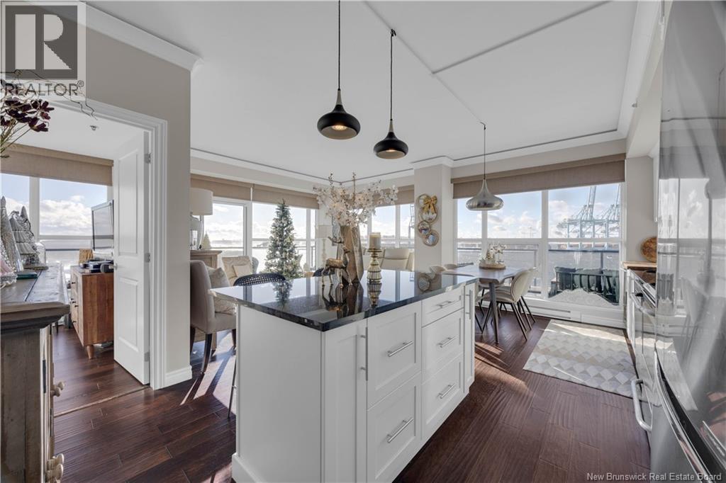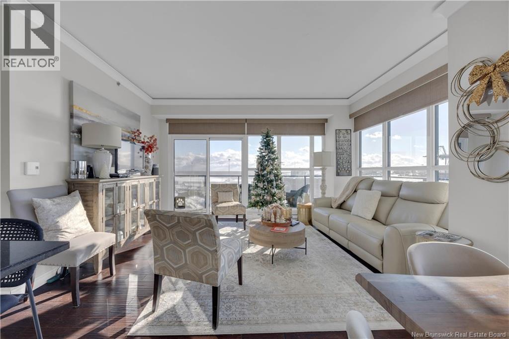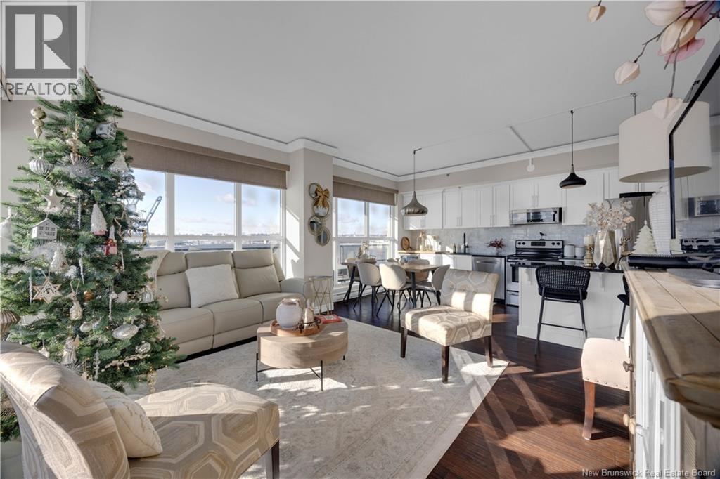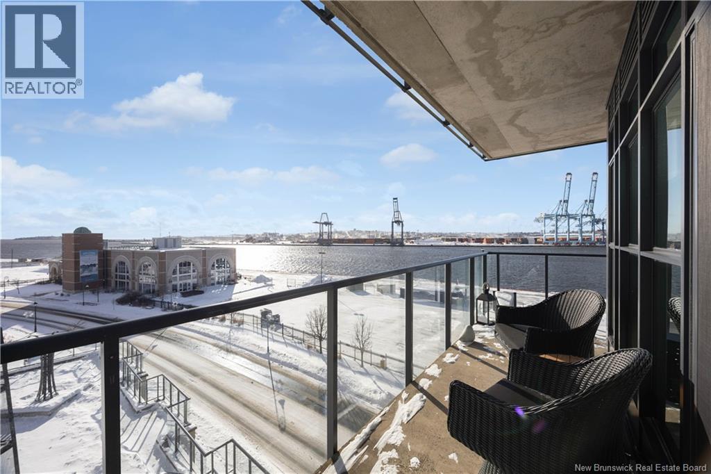 $748.30 MonthlyWake up to sweeping panoramic harbour views in this stunning corner unit condo at the sought after Harbourfront Residences at Three Sisters. Bright and modern, the open concept kitchen and living area features floor to ceiling windows, stainless steel appliances, fresh white cabinetry, and granite countertops creating an inviting space filled with natural light. The spacious primary bedroom includes a private ensuite, while a second bedroom, flexible den/office, and an additional full bathroom offer comfort and convenience. Step onto the oversized wrap around balcony to enjoy your morning coffee as the sun rises over the water. Your heated underground parking space comes with added perks including a car wash station and a dedicated bicycle bay with tire pump. The building offers exceptional amenities as well, such as an outdoor BBQ patio, fitness room, community lounge, and guest suite. Ideally located within walking distance to restaurants, shops, galleries, and the Saint John City Market, this condo delivers the best of urban living paired with low maintenance luxury. Experience the beauty of the harbour in every season from your new home at Harbourfront Residences. (id:42007)