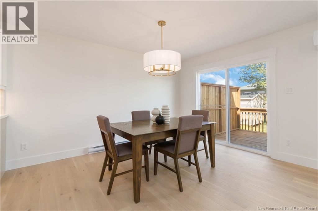 NOW AVAILABLE! NEW SEMI DETACH with IN-LAW SUITE, APPLIANCES INCLUDED IN PURCHASE PRCE. Take advantage of the First-Time Home Buyer Rebate for New Construction! This stunning Banff model semi-detached home includes soundproof insulation between the main floor and basement, a kitchenette with a plug for a stove in the basement. Enjoy triple-pane windows and extra wall insulation for improved energy efficiency and lower electrical costs. One mini-split heat pump is also included. This modern design offers a sought-after side entrance, engineered hardwood floors, beautiful cabinetry, and stylish tile flooring. The open-concept main floor features a modern kitchen with a large island, backsplash, and dining area with patio doors leading to the back deck. A 2-piece bath completes the main level. Upstairs offers three bedrooms, including a spacious primary suite with tray ceiling, plus a convenient second-floor laundry room. Paving and landscaping are provided as a favor only with no warranty and no holdbacks. Includes a 10-Year Atlantic Home Warranty for the buyer on closing. New Home Rebate and NB Power grant go to the builder on closing. Measurements for room sizes to be verified by Buyers .Purchase price is based on the home being the buyers primary residence. Sample photos. Vendor is a licensed REALTOR® in the Province of New Brunswick. Call your REALTOR® today! (id:42007)