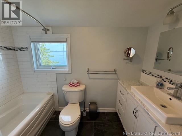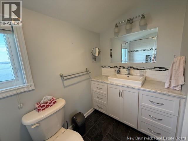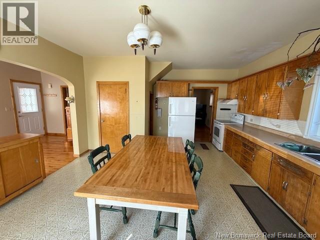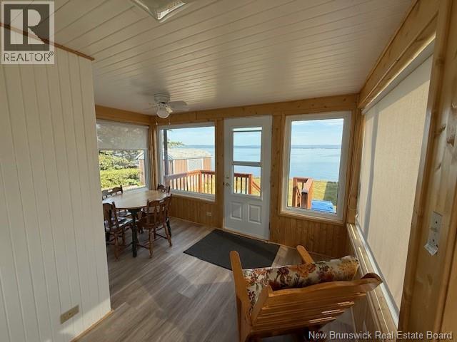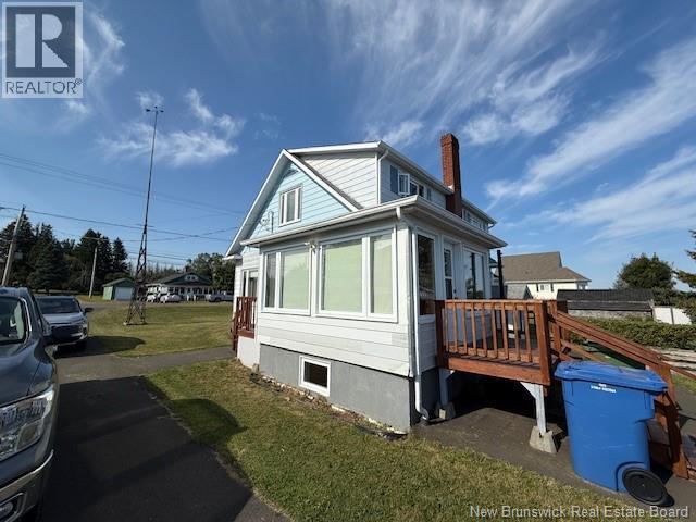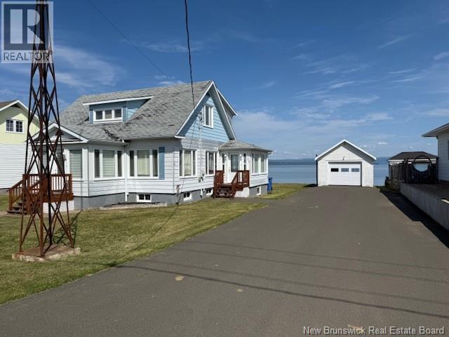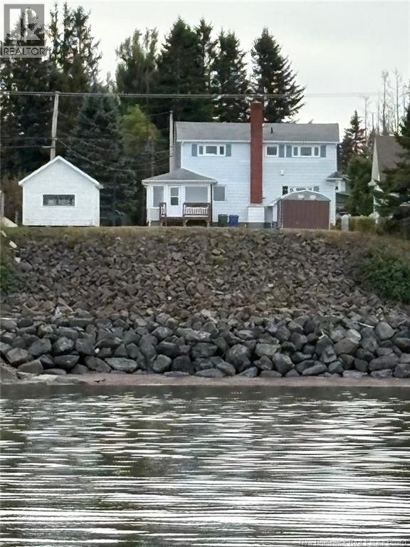 WATERFRONT; LOCATION, LOCATION, LOCATION. This 1 ½ storey home located in the center of the Village in Charlo. It features on the main floor a 3 seasons Solarium where you can sit and enjoy the beautiful view of the Bay of Chaleur, the open kitchen /dining area, living room with a den. The upper floor features 3 bedrooms and a renovated bathroom. Hardwood throughout with cushion in the kitchen and ceramic in the bathroom and laminate in the front and back entrance. Electric breaker panel done 2003, furnace 1995, oil tank Fiberglass 2004, water softener 2007, windows pvc 2004 Roof shingles 2000, water heater 2020. Driveway was paved 5 yrs. ago. Outside walls were reinsulated from in side. Detached single garage and shed included with all appliances. The rock were placed on the water line in 2006. (id:42007)