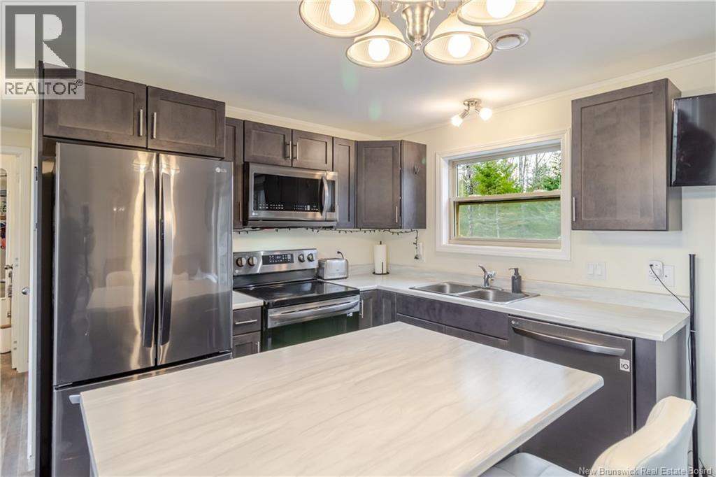 Welcome to 56 Clara Street, a modern and well-designed home set on over an acre of land on a quiet street within a family-friendly subdivision. Centrally located between Oromocto and Fredericton, this property offers the perfect balance of privacy and convenience. Just three years young, the home is ideal for minimalists, downsizers, or those looking for a smart step up from condo living without the cost or upkeep of a larger home. The modern layout features two bedrooms positioned on opposite sides of the home for added privacy, a full bathroom, and beautiful laminate flooring throughout. The bright kitchen is anchored by a large island that comfortably serves as both a dining table and gathering space, creating a warm and functional heart of the home. Comfort is enhanced with an efficient ductless mini-split, providing heating and cooling year-round. Outside, enjoy summer days in the above-ground pool while still having plenty of space to relax, garden, or play thanks to the generous lot size. A rare opportunity to enjoy modern living, outdoor space, and a central location in a quiet, established setting. (id:42007)