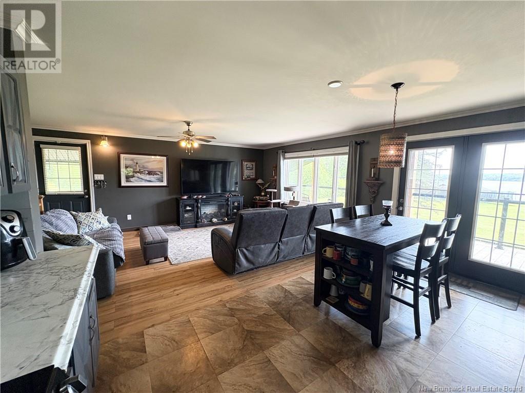 WATERFRONT PROPERTY WITH STUNNING VIEWS!Enjoy breathtaking views of the beautiful Miramichi River from this charming bungalow with a walk-out basement. Featuring a spacious wrap-around veranda perfect for barbecues and outdoor relaxation, plus lower level patio,this is your personal riverfront retreat! The home offers flexibility and income potential. Live in the main house and rent out the newly built 46' x 32' garage or vice versa. The garage includes a loft-style bedroom on the second floor, providing additional living or rental space. Below, you'll find a mechanics dream setup with ample room for a workshop, vehicle storage, or hobby area all Heated with wood stove, you can comfortably work in the garage any time of the year all while enjoying scenic river views.Upstairs in the main home, enjoy a cozy space complete with a wood-burning stove, cedar-lined closets, and a walk-out deck overlooking the water. The lower level also features a walk-out patio, ideal for guests or a rental unit. Whether you're searching for a starter home, retirement haven, seasonal getaway, or investment property, this clean, well-kept home offers endless possibilities. (id:42007)