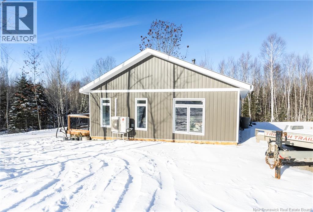 Discover peaceful rural living with this affordable and newly constructed 2 bed / 1 bath bungalow setting on 13 acres for total privacy. Crafted with ICF construction for exceptional year round energy efficiency this contemporary style home is fresh & bright making it perfect for relaxed country living. The one level layout consists of an open concept kitchen& dining, living room, 2 good sized bedrooms, full bath and large mudroom / laundry area at rear. This home has a nice curb appeal with it's full length deck at front and covered entryway and is complimented with On demand hot water, a cozy woodstove, & ductless mini split heat pump. As an added bonus the home is completely solar powered for extra efficiency (connection to the grid can be done). Wether you're just getting started or ready to downsize, this quiet retreat offers a chance for a manageable homestead or simple rural tranquility that's located just 25 mins west of Fredericton in a desirable countryside setting. Move-in ready & built to last. (id:42007)