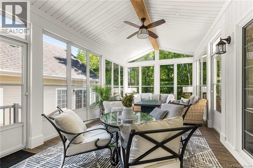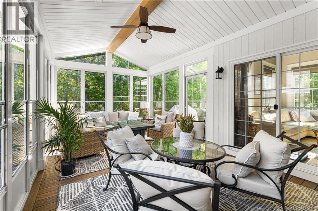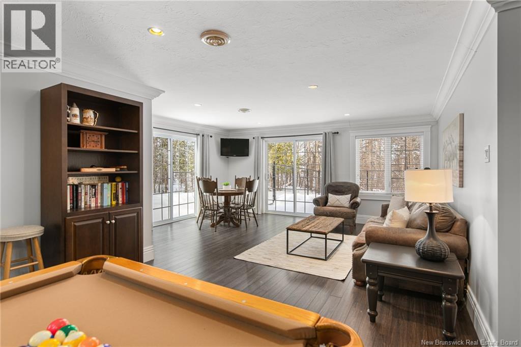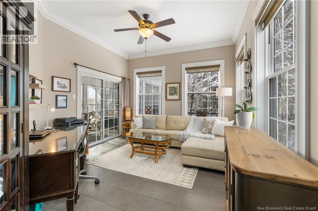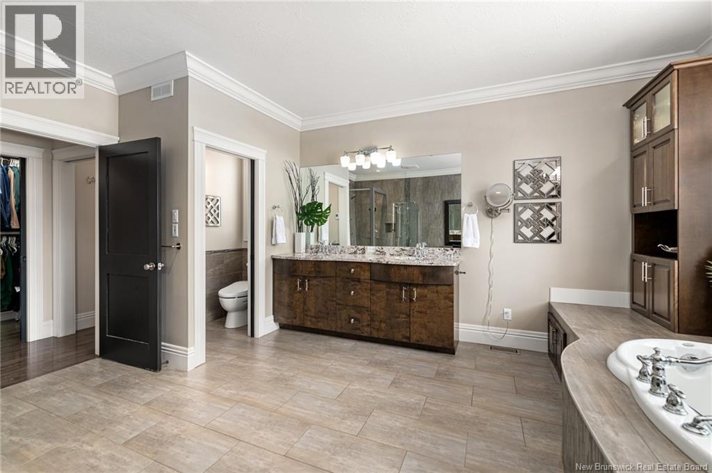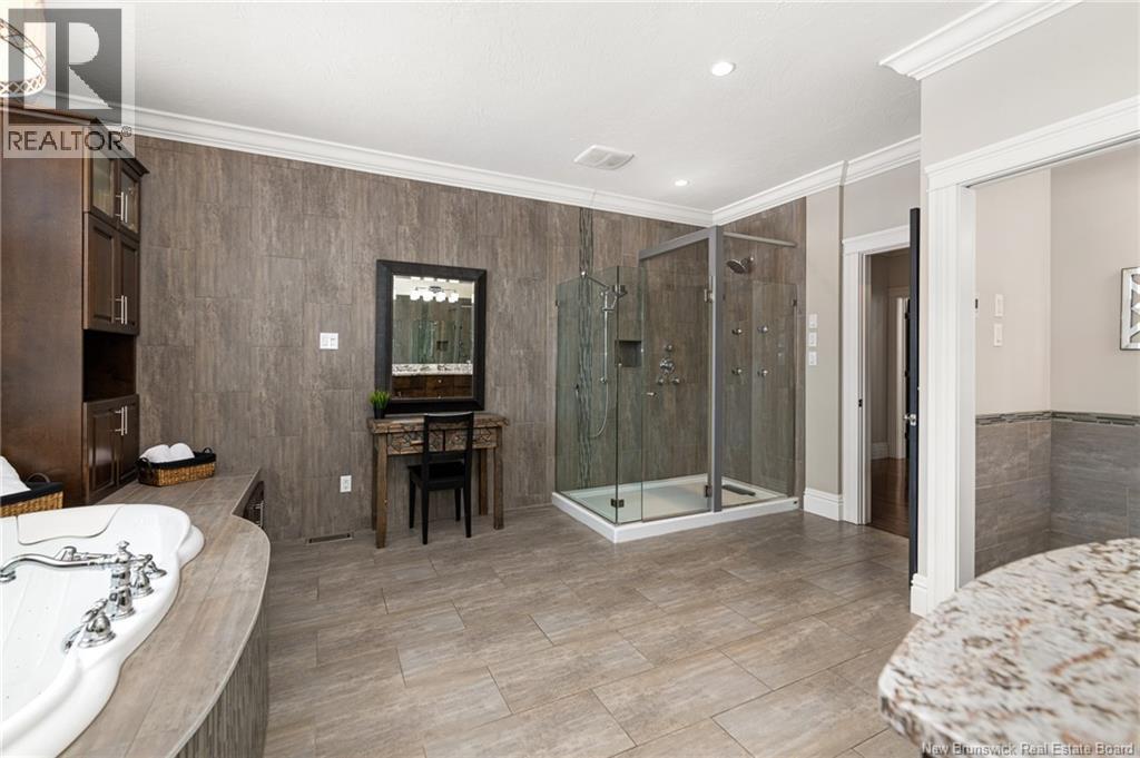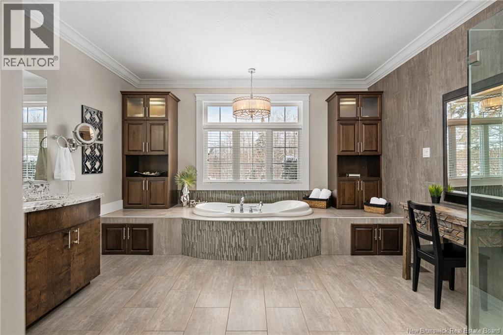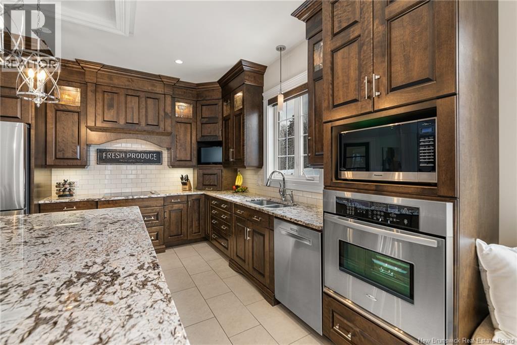 STUNNING EXECUTIVE HOME WITH LOTS OF UPGRADED FEATURES INCLUDING DOUBLE ATTACHED GARAGE AND DETACHED GARAGE IN MONCTON EAST! Located on a quiet street and within easy access to major highways, this home offers LOTS OF LIVING SPACE AND HIGH END FINISHES. The main floor features an OPEN CONCEPT DESIGN offering a CUSTOM KITCHEN WITH WALK-IN PANTRY and GRANITE COUNTERTOPS, a well appointed living room highlighted by vaulted ceilings and a propane fireplace, an office, and a recently added three season sunroom. Down the hall, you will find the PRIMARY BEDROOM offering his and hers walk-in closet and a SPACIOUS LUXURIOUS 5 PC ENSUITE. An additional bedroom, a full bathroom, and a bedroom complete this level. The FULLY FINISHED LOWER LEVEL WALKOUT adds additional living space with a large family room, a media room with a built-in bar, a gym, a full bathroom, two additional bedrooms, and a storage room. The lower level also includes a pellet stove for an alternate heat source. This home features the incredible bonus of in-floor heating throughout both floors, the attached garage, and the detached garage. The exterior of this home includes professionally manicured landscaping, a detached garage with a back room HOT TUB, and a loft for storage, and MUCH MORE. Please click on the link: https://youtu.be/bInFOgG7gek to view a video showing the dronage of the property for your review. Call your REALTOR® for more details! (id:42007)