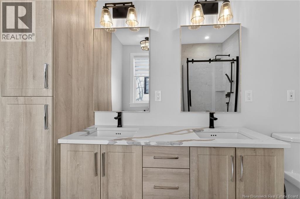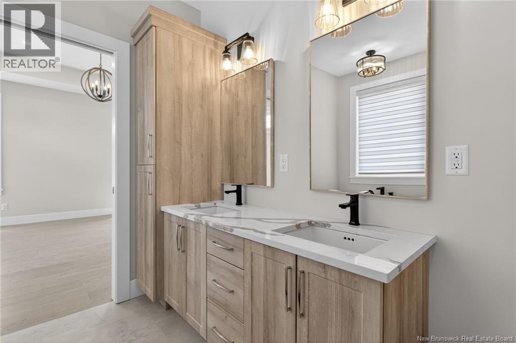 This stunning climate-controlled bungalow in desirable North Moncton offers over 3,000 square feet of luxurious living space,showcasing high-end finish work and meticulous attention to detail throughout.The welcoming foyer greats you into the main floor living area,where 9-foot ceilings and large windows create a sense of openness and light.The living room is highlighted by a beautiful fireplace.The gorgeous kitchen is a true centerpiece,featuring an abundance of cabinetry, quartz countertops,a beautiful backsplash, and a bright dining area with access to the backyard.A family bath and three bedrooms, including a separate primary suite with a walk-in closet featuring built in cabinetry and a spa-like ensuite with quartz dual vanity, a soaker tub and separate shower. A mudroom with garage access and a convenient powder room complete this level.Decend the elegant hardwood staircase to the large family room. A separate bright and spacious living area completes this perfect package.This versatile space with a private entrance includes a living room, area for kitchenette,bedroom, full bath and laundry,making it ideal for multi-generational living. Rough in for an EV charger.Situated on a quiet court, this home offers easy access to walking trails, parks, the North End YMCA, highways, and all amenities. Combining luxury, functionality, and location, this property presents a rare opportunity for families seeking both space and versatility in one of Monctons most sought-after areas. (id:42007)