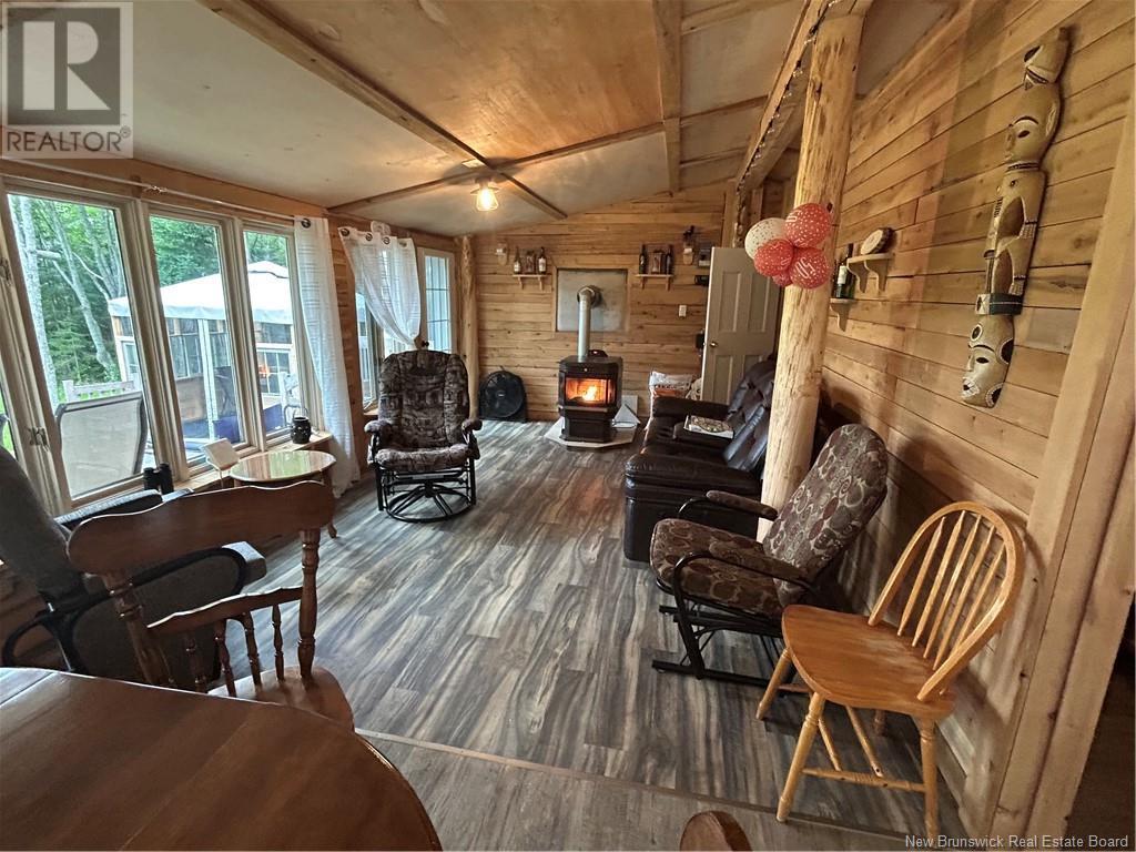 Beautiful little cottage/camp on the grid, located not far from the town of Tracadie. What can we say about the little cottage on the property. A solid construction with a metal roof and wood interior and exterior finishes, all very rustic, one bedroom, living room, eat in kitchen and including a half bath. A pellet stove for your winter evenings and a gazebo for enjoying evenings with friends in the summer. You can also enjoy the view of the small stream, which has a higher water level from spring to August. The 1.9-acre wooded lot is very private, the ideal location for those seeking tranquility while being close to the village of St-Isidore, near a convenience store with gas station, a butcher shop, and a bakery. Airbnb could be potential for an investor. No well or septic. (id:42007)