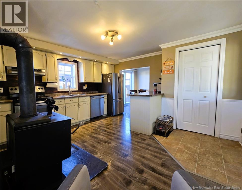 This home has received significant upgrades that represent real savings for the coming years: asphalt shingle roof, PVC windows, copper wiring and a 100-amp breaker panel, all replaced in 2010. Plumbing is copper and PVC. Heating and cooling are provided by a new heat pump, baseboard heaters and a wood stove. The crawl space is insulated at the ceiling, protecting the main floor above. Inside, there is an entry with closet, a dining area with wood plank ceiling, a functional kitchen with cabinets and pantry with barn-style door, a spacious living room with wood plank walls and well-kept floors, as well as a primary bedroom of good size with access to a balcony in need of repair and two additional bedrooms upstairs via carpeted staircase. Outside, the home features faux brick and beige vinyl siding, a shed and a private back deck. The location is excellent: school, church, convenience store with restaurant, community hall and ATV trails nearby, only 12 minutes from Tracadie (hospital and shops), 10 minutes from beaches and close to the Tracadie River. Tracadie is a dynamic town in the Acadian Peninsula offering a hospital, supermarkets, restaurants, cafés, schools, cultural and sports activities, as well as privileged access to beaches and trails. An affordable and functional home that combines comfort, peace of mind and a practical location! (id:42007)